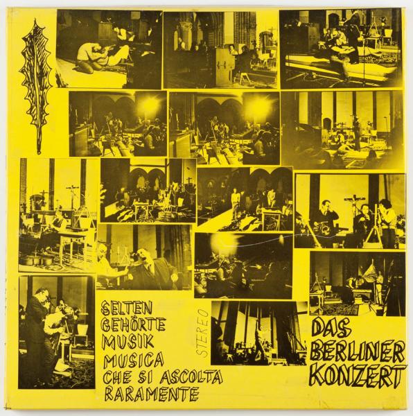 Backcover eines Sonderexemplares der LP AD HOC MUSI 1980–84, Tochnit Aleph, Berlin 2013, 370 Exemplare und 30 Sonderexemplare,signiert und mischtechnisch bearbeitet, 31 x 31,3 cm