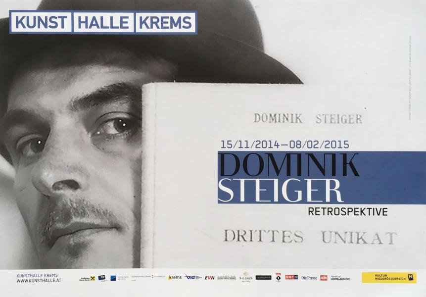 Hans-Peter Wipplinger und Susanne Längle iniziierten und konzipierten die Ausstellung DOMINIK STEIGER, RETROSPEKTIVE, die nach ihrer wissenschaftlichen Aufarbeitung des Steigerschen Werkes im Herbst 2014 in der Kunsthalle Krems umgesetzt wurde.