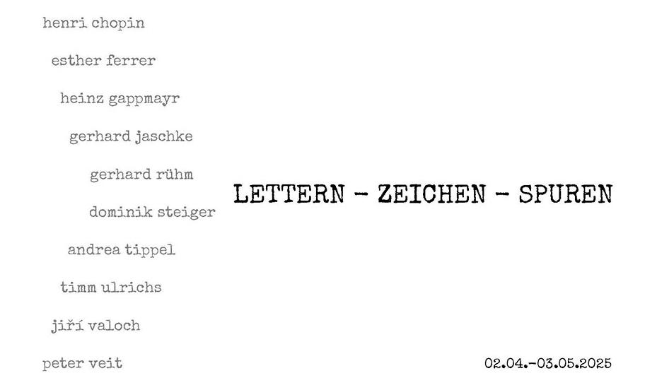 Henri Chopin | Esther Ferrer | Heinz Gappmayr | Gerhard Jaschke | Gerhard Rühm | Dominik Steiger | Andrea Tippel | Timm Ulrichs | Jiří Valoch | Peter Veit